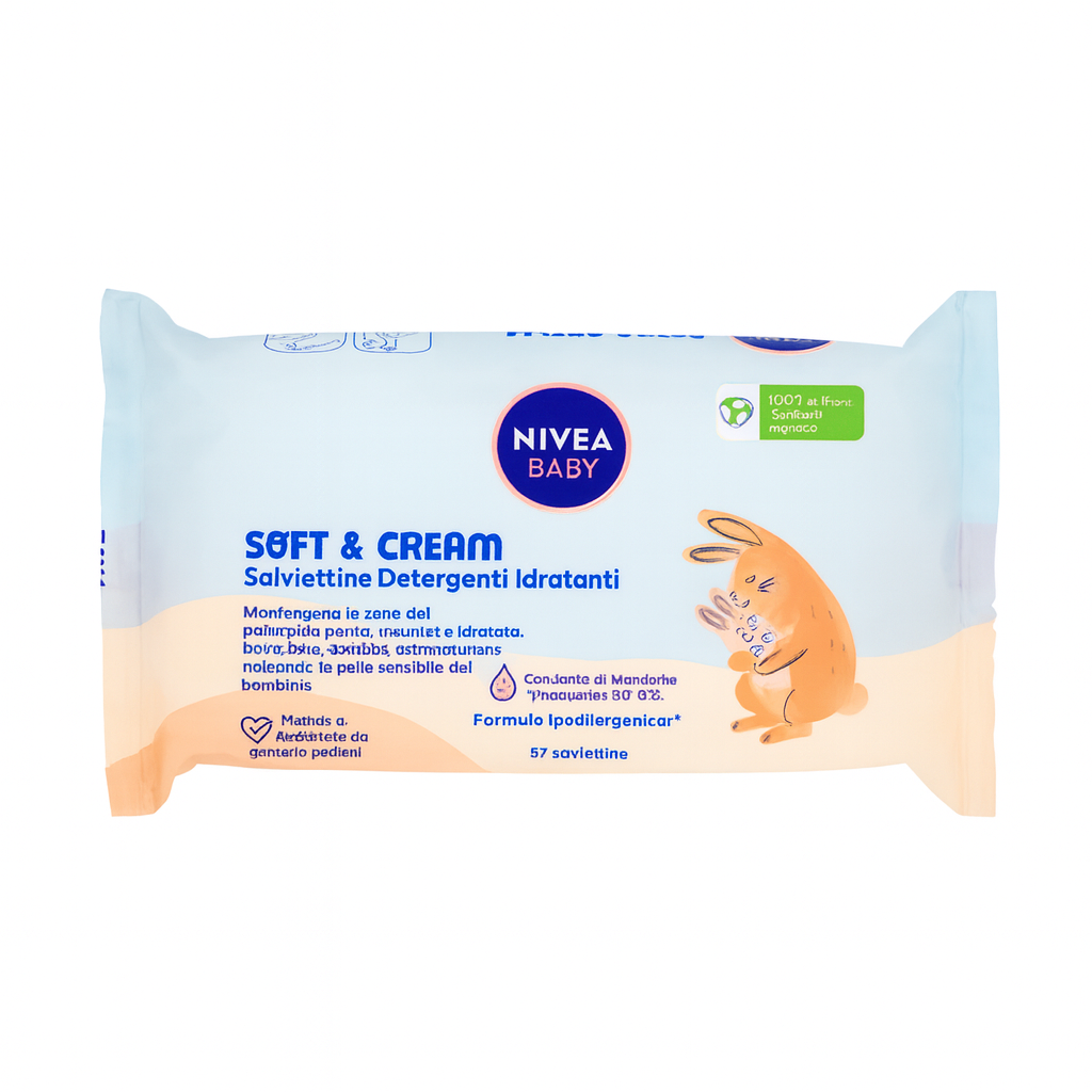 دستمال مرطوب نیوا بیبی Soft & Cream تعداد ۵۷ عددی اورجینال