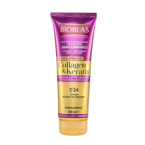 کرم موی بیوبلاس حاوی کلاژن و کراتین حجم ۲۵۰ میل اورجینال | تقویتکننده و ضدریزش برای انواع مو