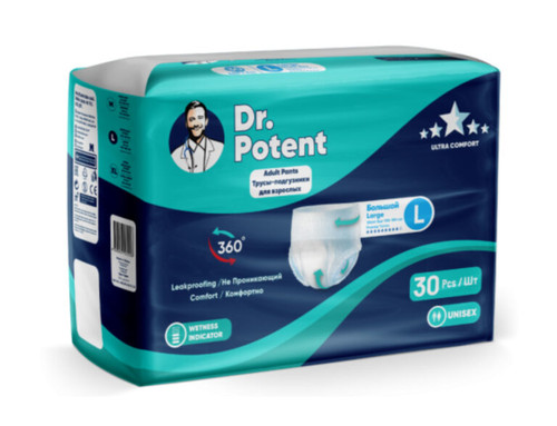 پوشک بزرگسال شورتی دکتر پوتنت Dr Potent سایز بزرگ (L) اندازه 100-150 سانتی متر 30 عددی۱٬۹۰۰٬۰۰۰ 17%