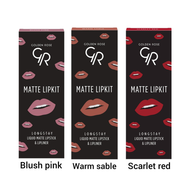 کیت رژ لب مات گلدن رز مدل مات لیپ کیت اورجینال | شامل رژ لب مایع ۵.۵ میل و خط لب ۱.۲ گرم با رنگ هماهنگ
