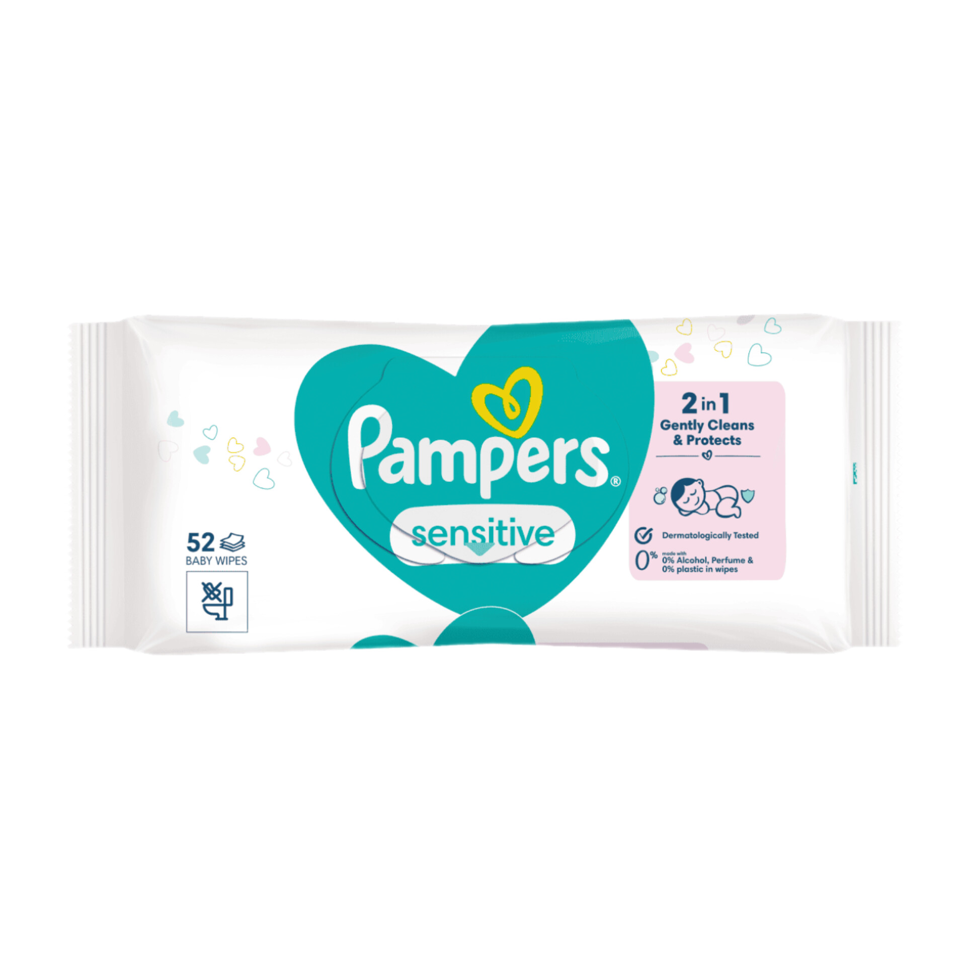 دستمال مرطوب کودک پمپرز بسته ۵۲ عددی اورجینال | مناسب پوست حساس نوزاد بدون الکل و پارابن