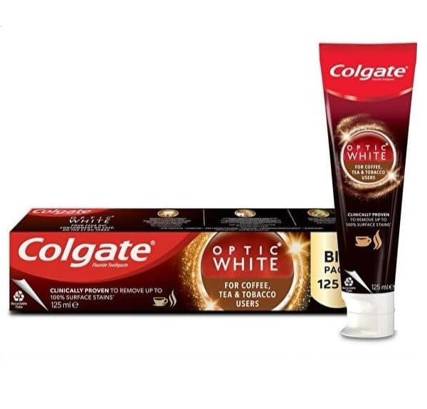 خمیر دندان کولگیت (کلگیت) مدل اوپتیک وایت ضد زردی چای، قهوه و سیگار حجم ۱۲۵ میل